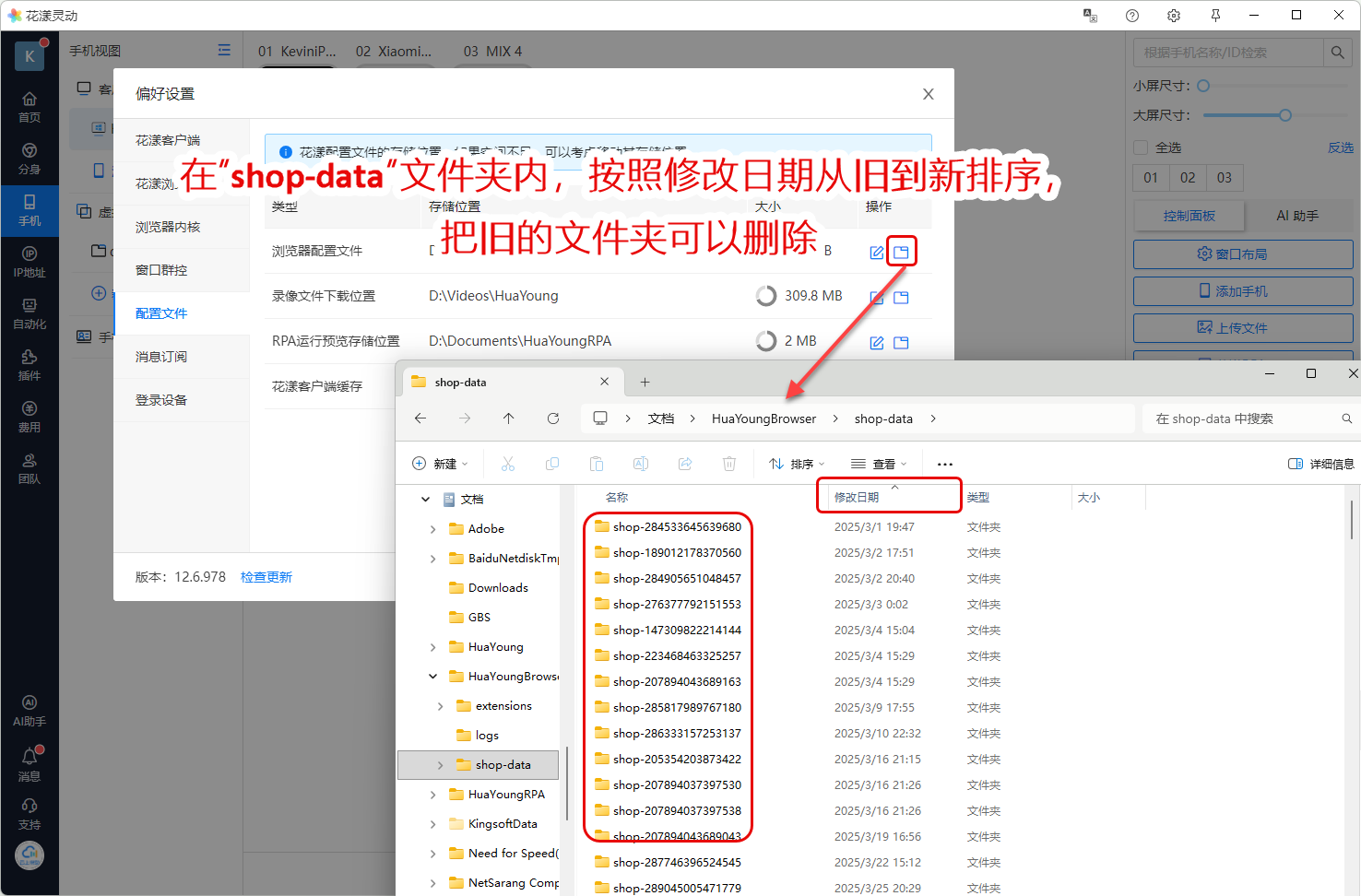 shop-data子文件夹 - 按照修改日期由旧到新排序,把一些旧的以