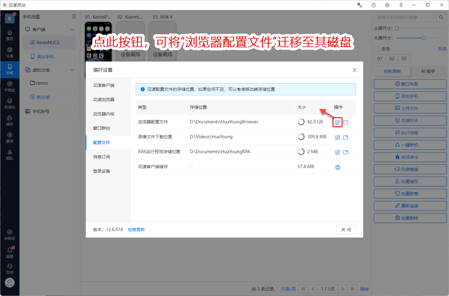 如果您的电脑有其它磁盘,可将“浏览器配置文件迁移至其它磁盘,如下图所示: