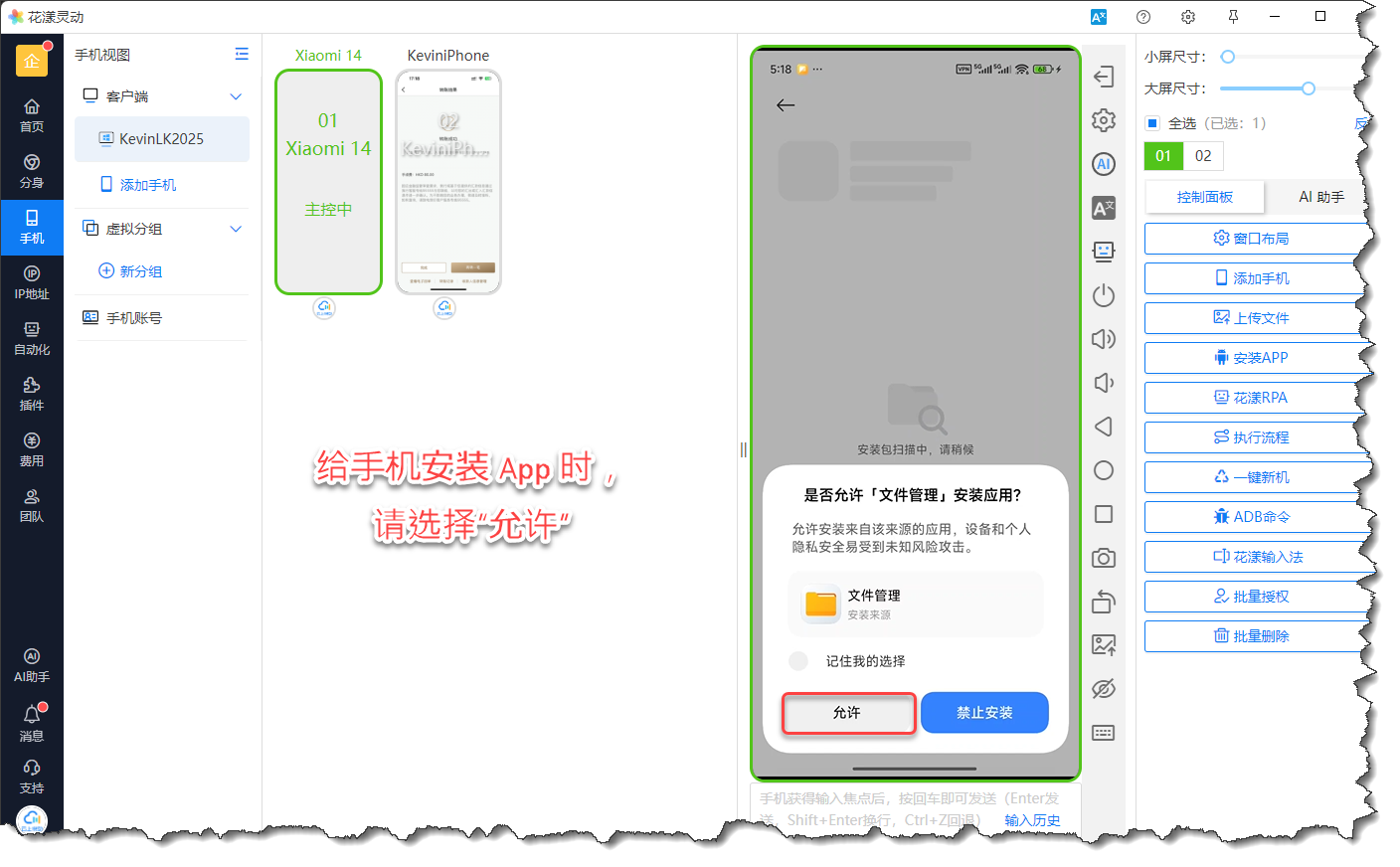如果是云手机,请注意要在弹出的安全提示中,选择“允许安装”,如下图所示: