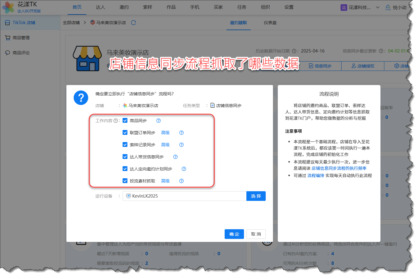 首先您需要知道的是,所有的数据的抓取都是通过“店铺信息同步流程”完成的,因此,您需要了解这个流程到底抓取了哪些数据: