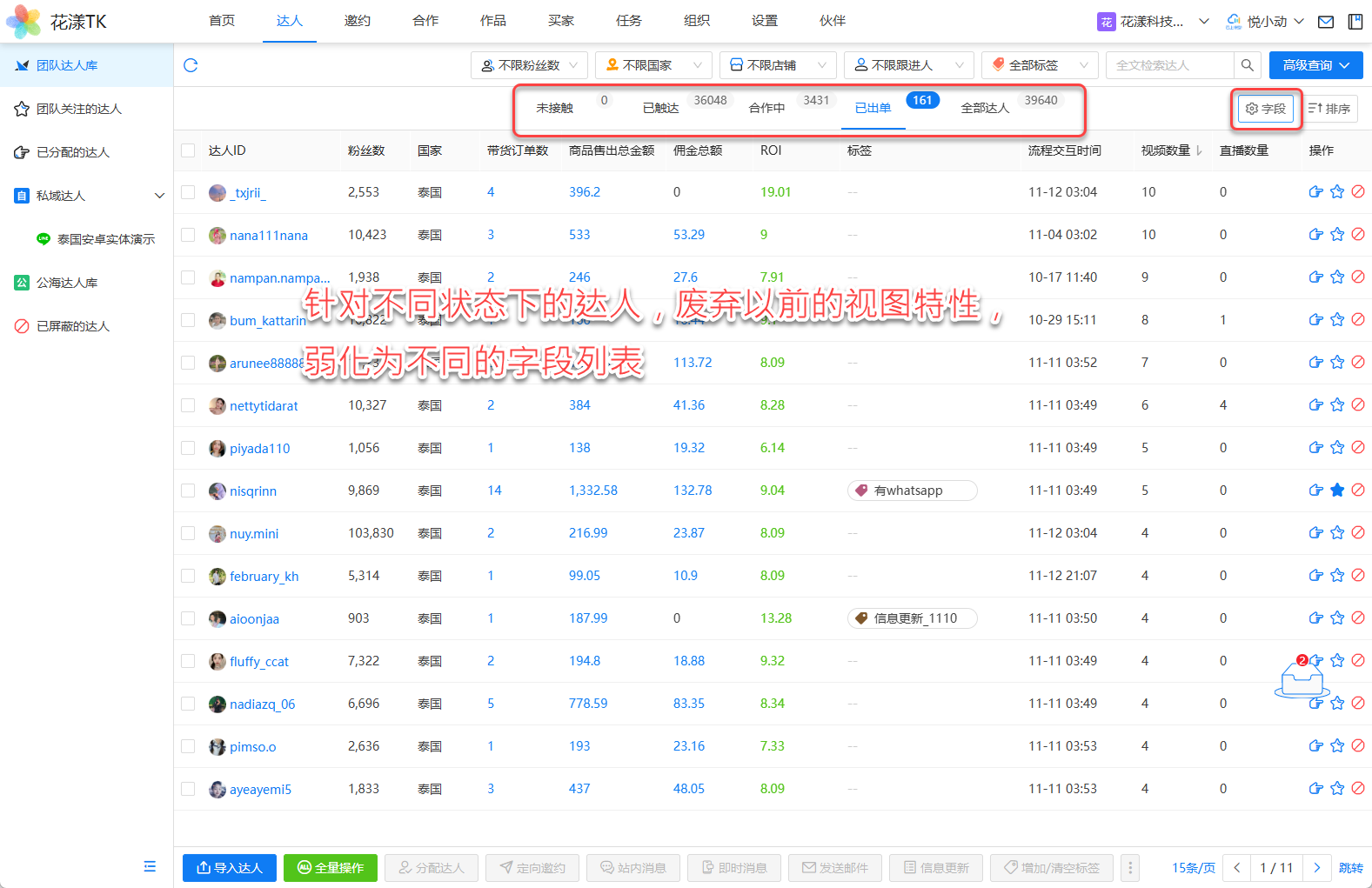 新版本推出了一个新的概念:合作单,能够把达人、BD(商务拓展)、合作的商品、投入产出的明细,放到合作单里统一管理,这对上规模的卖家团队来说,能够更精细化的管理线下达人的建联与员工的绩效: