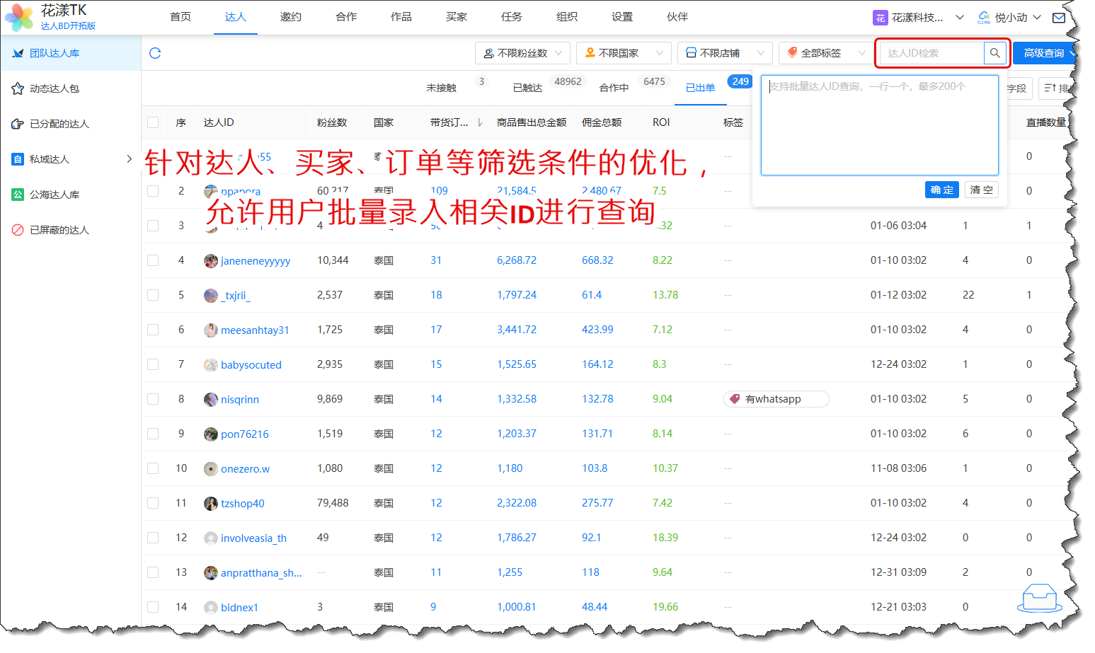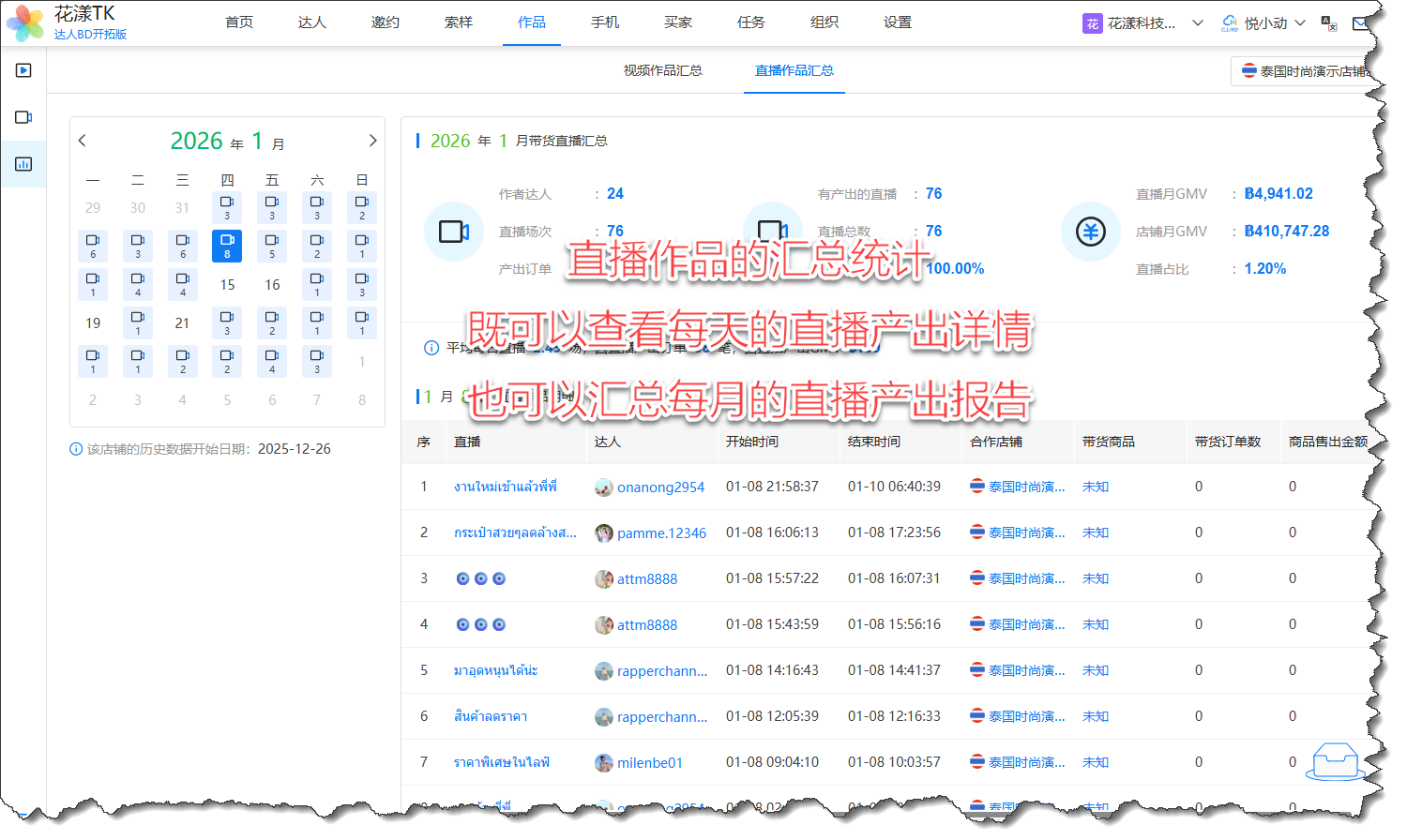 2026年1月27日,花漾TK为您发布了新的版本,本次迭代主要围绕达人与 BD 的绩效管理等方面的工作,主要更新内容有: