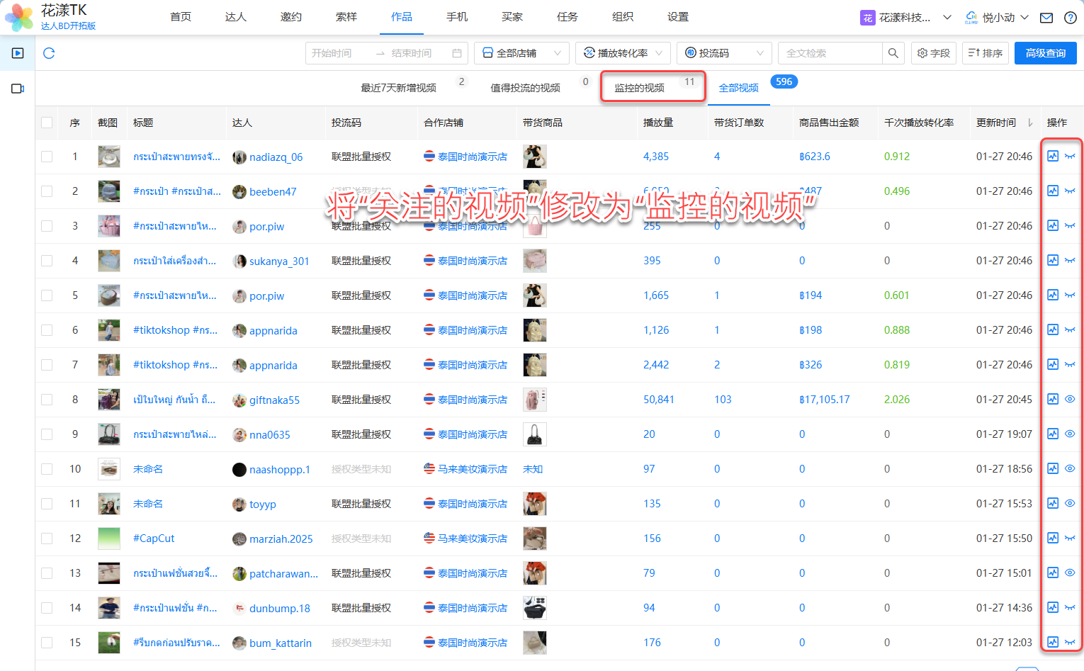 很多用户对达人带货视频的媒体信息(播放量、点赞量等)非常重视,新版本针对“视频媒体信息更新”流程做了优化,执行速度更快、更稳定。同时,将“关注的视频”更名为“监控的视频”,命名更直接,避免用户困扰: