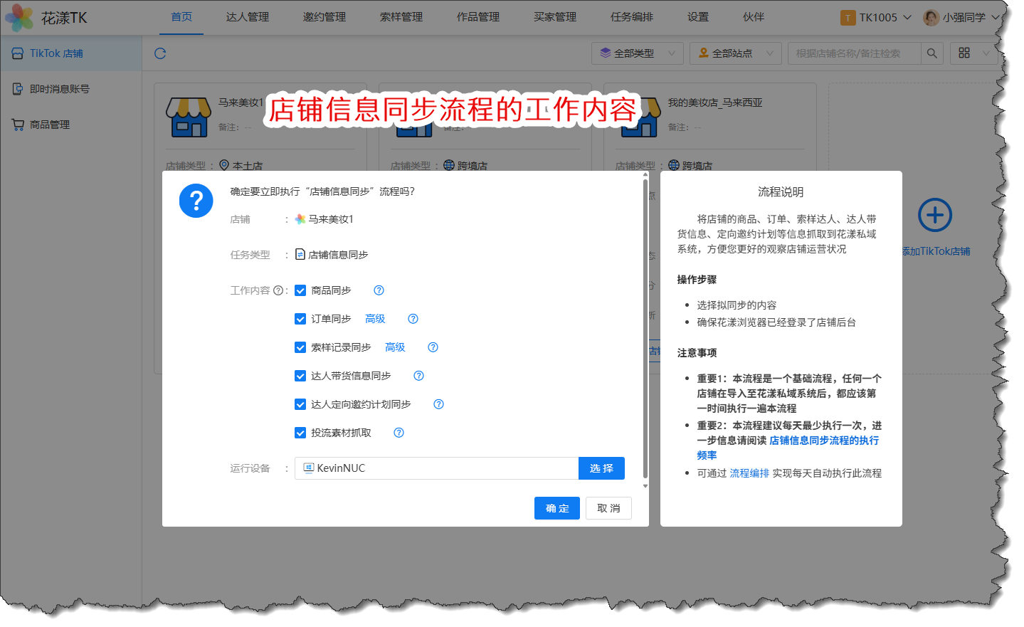 “店铺信息同步”流程是花漾TK中最重要的流程,体现在: