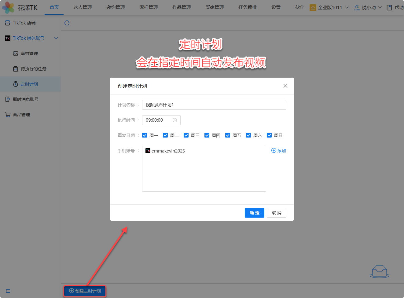 自动计划是指:在指定的时间自动发布视频。这里需要注意的是:
